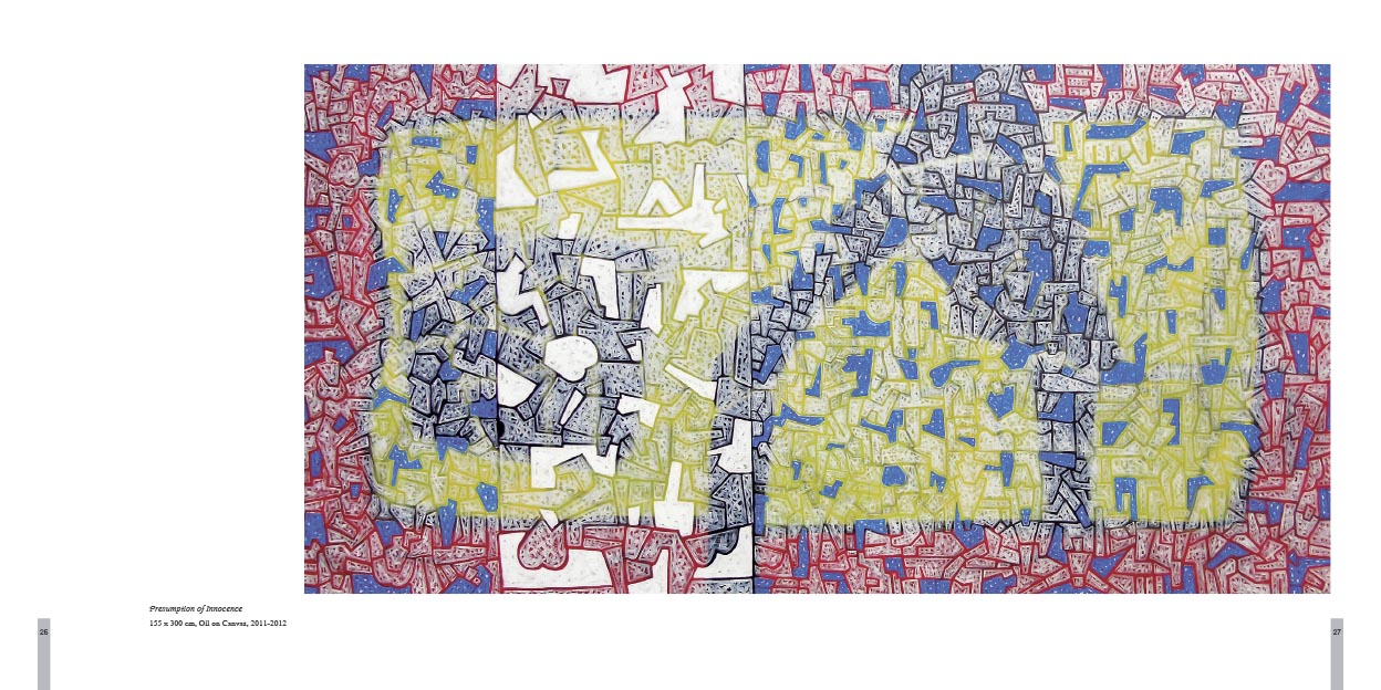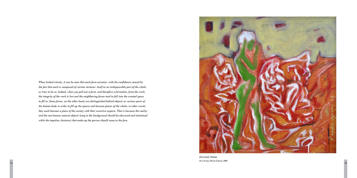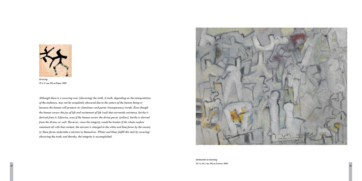 As one can see, certain organs that belong to some groups of individuals of the array who tender crowdedness and turbulence are in extreme hustle setting up individuals' egotism at excessive levels. Some organs of some individuals, however, are dull, cannot find a room, or are wiped out, run over by an organ of a more dominant individual. Attempting to add required room in order to eliminate this situation may extinguish the balance, the society, because, with the existing state, individuals have built up a dynamic "network" among themselves and can perform their role with the help of others. This compulsory asymmetric contingency and affectivity, as a result, obscures and consumes the pure reality and the reality of nature. The creation of the artworks contains a search for geometricizing the social pressures and rudeness. As a consequence of the search, arithmetic bursts as edges of the objects are applications that I have dared after calculations and try-outs in a manner not ever done before. While I paint the society-individual formation I observe in a constructive perception and in a conventional attitude, I apply the white color, which is not acknowledged as a color at all, in a wild manner. Thereby, my artworks within the concept of my thesis convey how much at a reverse position of the general opinion I have arrived.