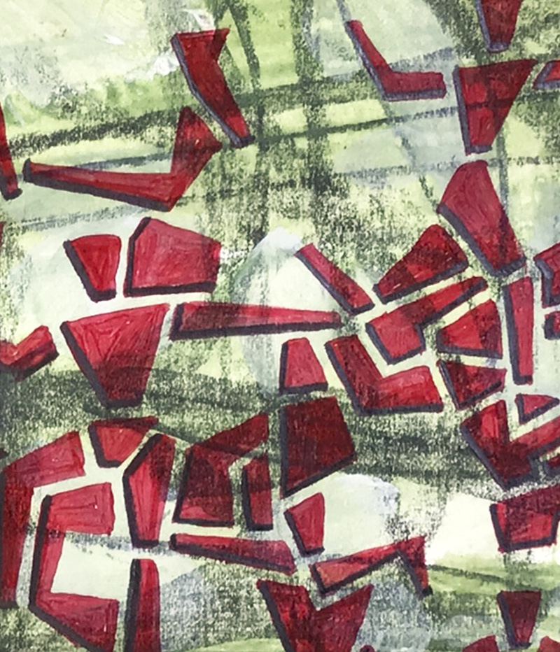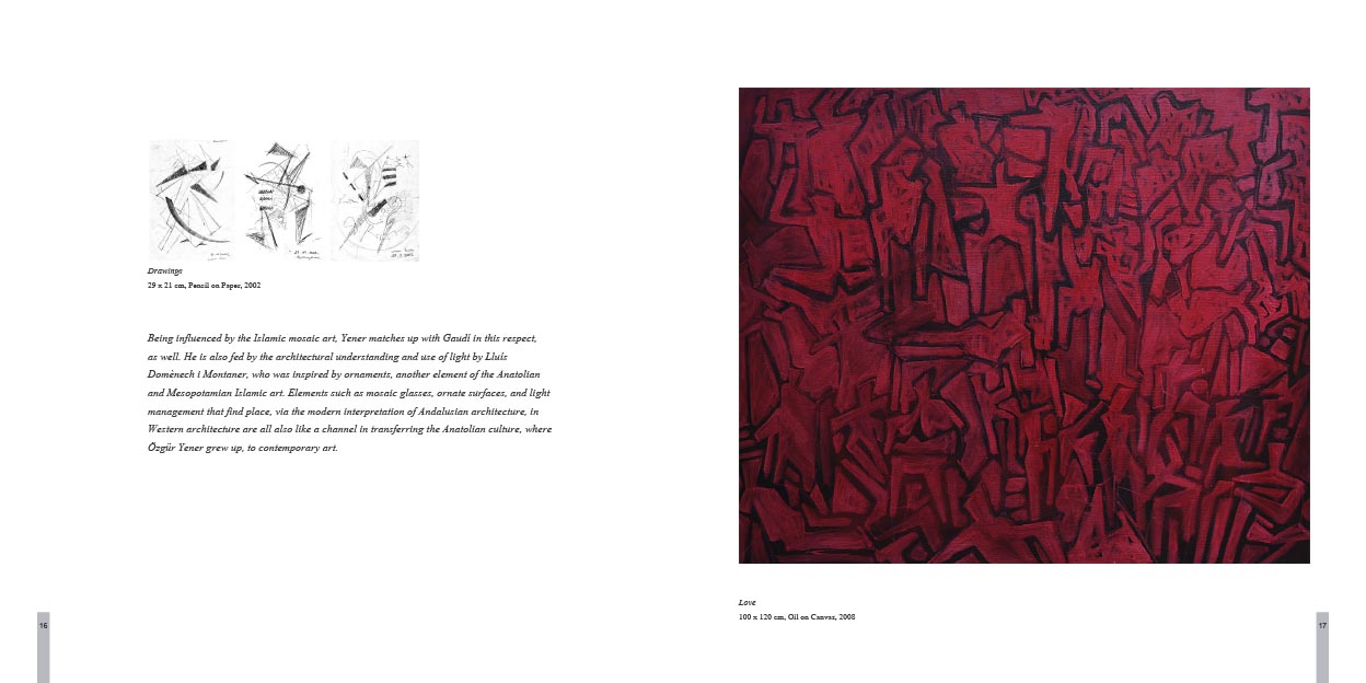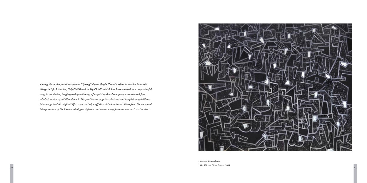 The creation of the artworks contains a search for geometricizing the social pressures and rudeness. As a consequence of the search, arithmetic bursts as edges of the objects are applications that I have dared after calculations and try-outs in a manner not ever done before. While I paint the society-individual formation I observe in a constructive perception and in a conventional attitude, I apply the white color, which is not acknowledged as a color at all, in a wild manner. Thereby, my artworks within the concept of my thesis convey how much at a reverse position of the general opinion I have arrived.