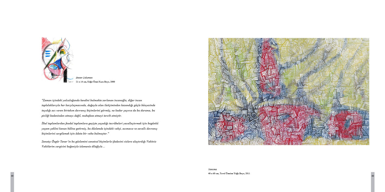 2012 yılında Vakitsiz Vakitlerim sergimde "yansımalar" kavramı ile izleyicilerime sunduğum araştırmalarımda toplumun bütünlüğünü/parçalanamazlığını ifade etmiş, temel olarak üç olguyu vurgulamıştım: benlik dürtüleri, bu benlik dürtüleri ile oluşan insan şekillenmeleri ve bu şekillenmelerin saf gerçeği ve doğayı örtüp tüketmeleri. Ayrıca, mevcut aritmetik denge tüm insan şekillenmelerinin varlığına ihtiyaç duyar.