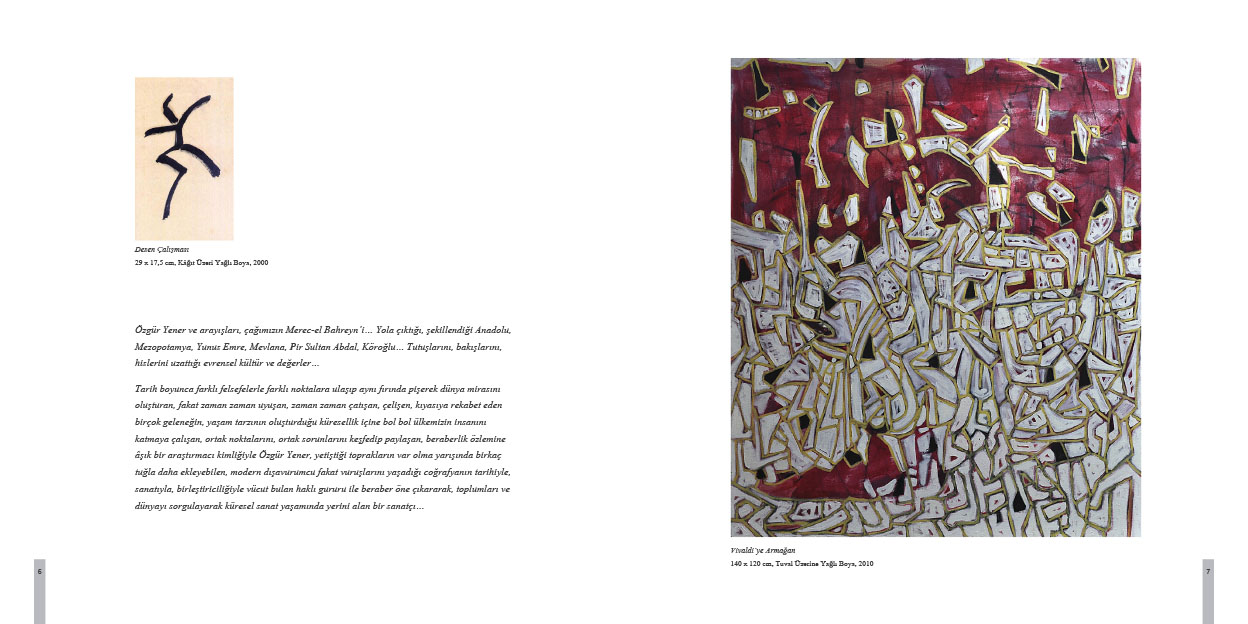 "Derviş" ismini verdiğim resmimin arka planı çalkantılı zaman kesitlerinin bizler için âdeta bir simgesi olan onuncu yüzyıl öncesinin sosyolojisi ve insan psikolojilerine uzanan düşünüşlerimdir. İnsanın isterse ne kadar dünyaya açık ve paylaşımcı olabileceği, inandıklarına ters düşen olgu ve gelişmelere nasıl barışçıl bir protest tavır takınabileceği, temel bir bilgiyi nasıl zenginleştirebileceği ve tüm bunlar yoluyla geleceğe yönelik iyiliğe dair imza da bırakabileceği, kendini ve tüm varlığını bu yola adayabileceği ilgimi çeken ve beni en etkileyen tarihî öğeler olmuştur.
